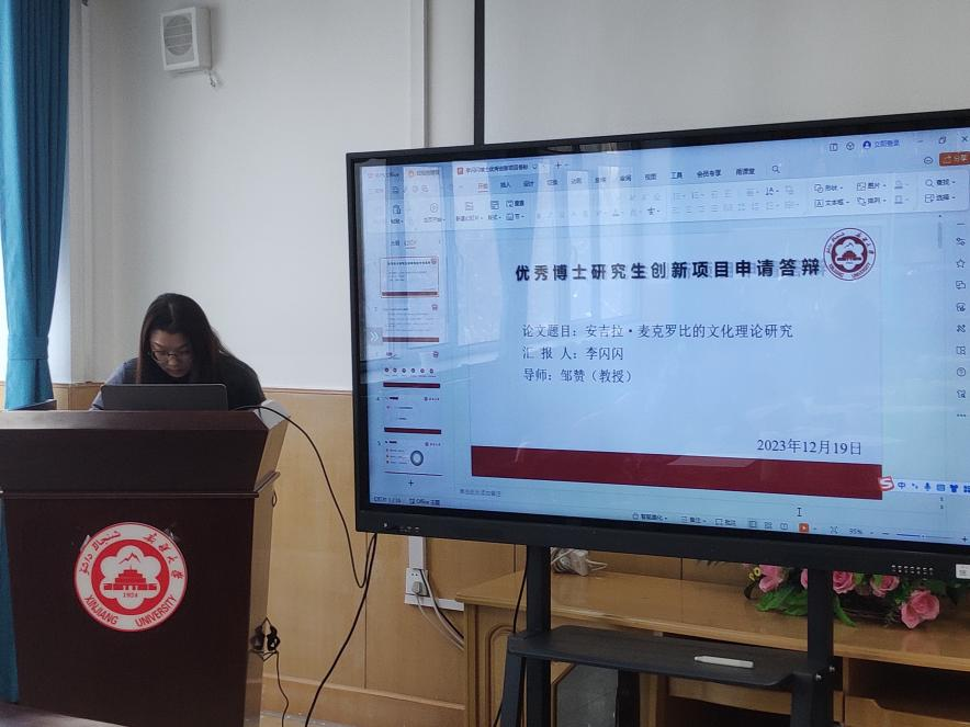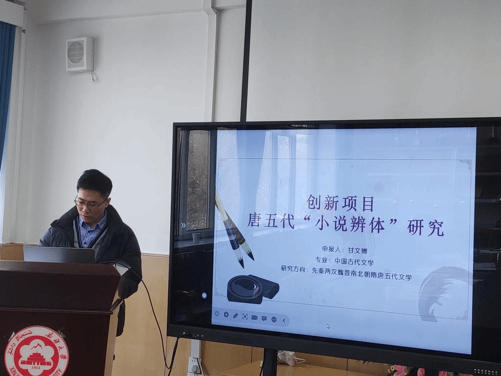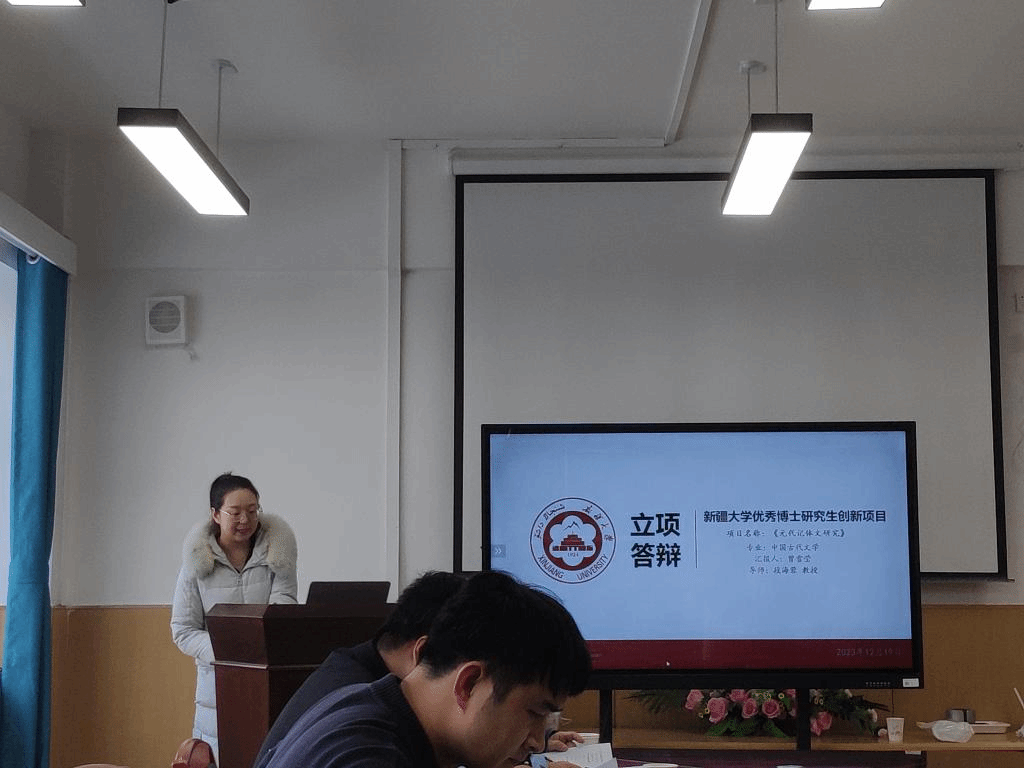会议伊始,高志副院长宣布报告会开始。首先,是由四位立项答辩报告人就各自申报项目立项依据、研究内容、方法、技术指标、拟解决的关键问题、研究方案及可行性分析逐一进行汇报。中国古代文学专业博士生曾雪莹从五个方面对她的项目展开论述;中国古代文学专业博士生甘文博就选题背景开始展开了详细介绍;语言学及应用语言学专业博士生祁阳从三个方面对其项目研究背景和研究意义做了详细的介绍;比较文学与世界文学专业博士生李闪闪就研究对象的学术生涯进行了介绍,而后从国内研究进行了重点阐述。