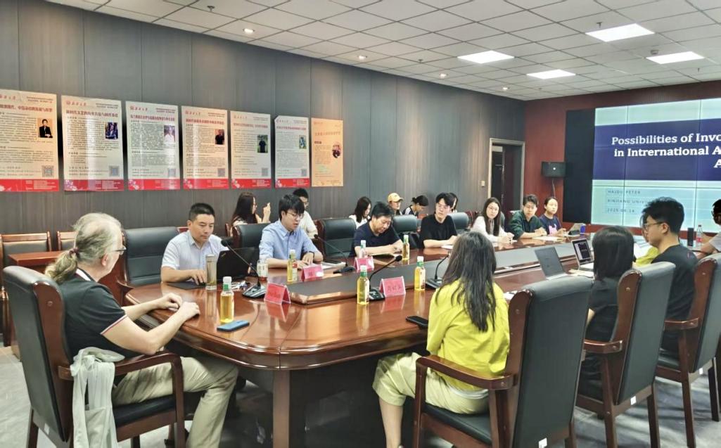 讲座尾声,Péter教授、邹赞教授、周铭英教授、李珍玲研究员、丁鹏飞副教授与在读博士生楼旸、许彬、李闪闪和在读硕士生倪咬狼、张祖豪等就听觉叙事、中文文献在国际期刊的定位、诺贝尔文学奖的价值与标准、跨语言写作的表达习惯与差异等问题展开了进一步地答疑交流。